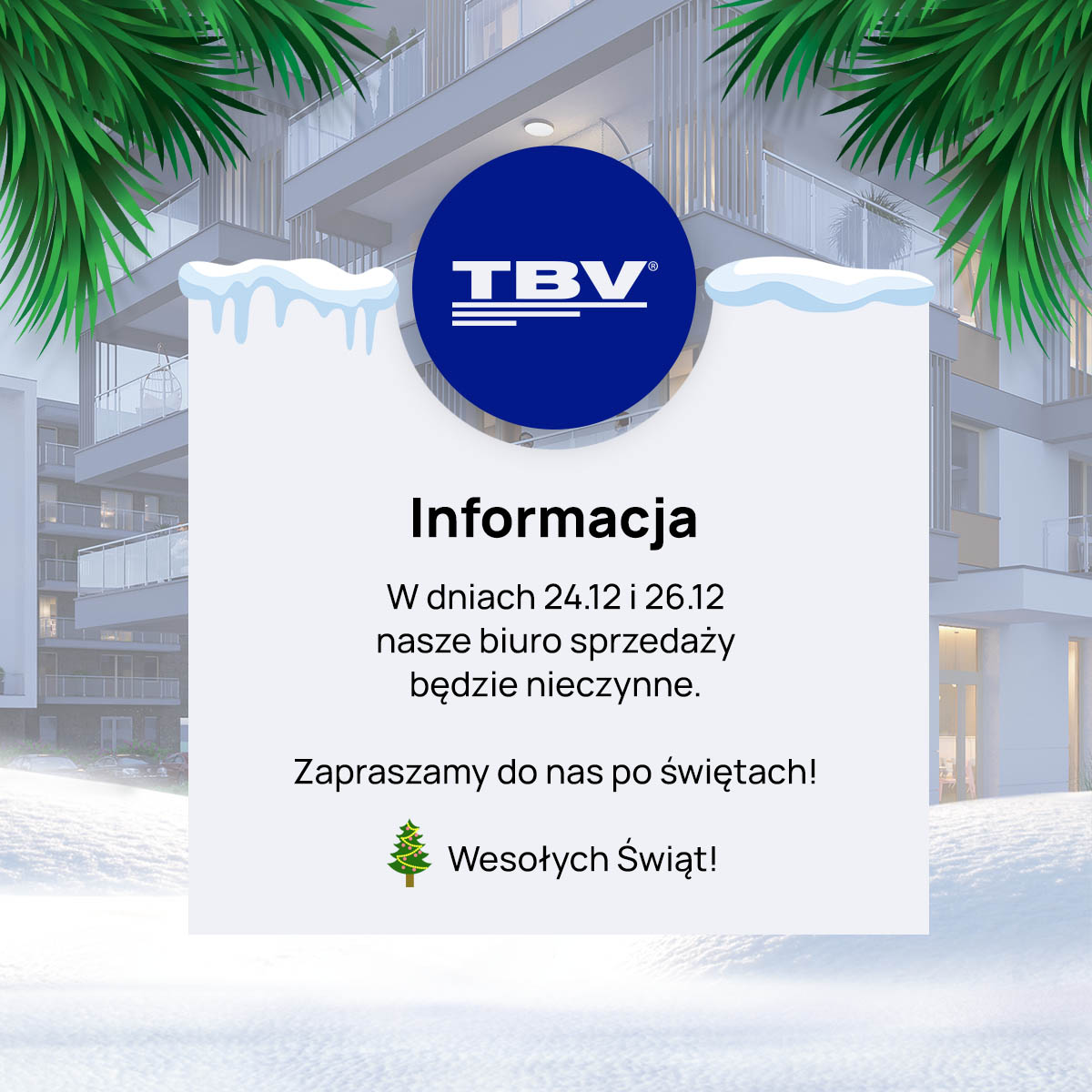 W dniach 24.12 i 26.12 nasze biuro sprzedaży będzie nieczynne. Zapraszamy do nas po świętach.