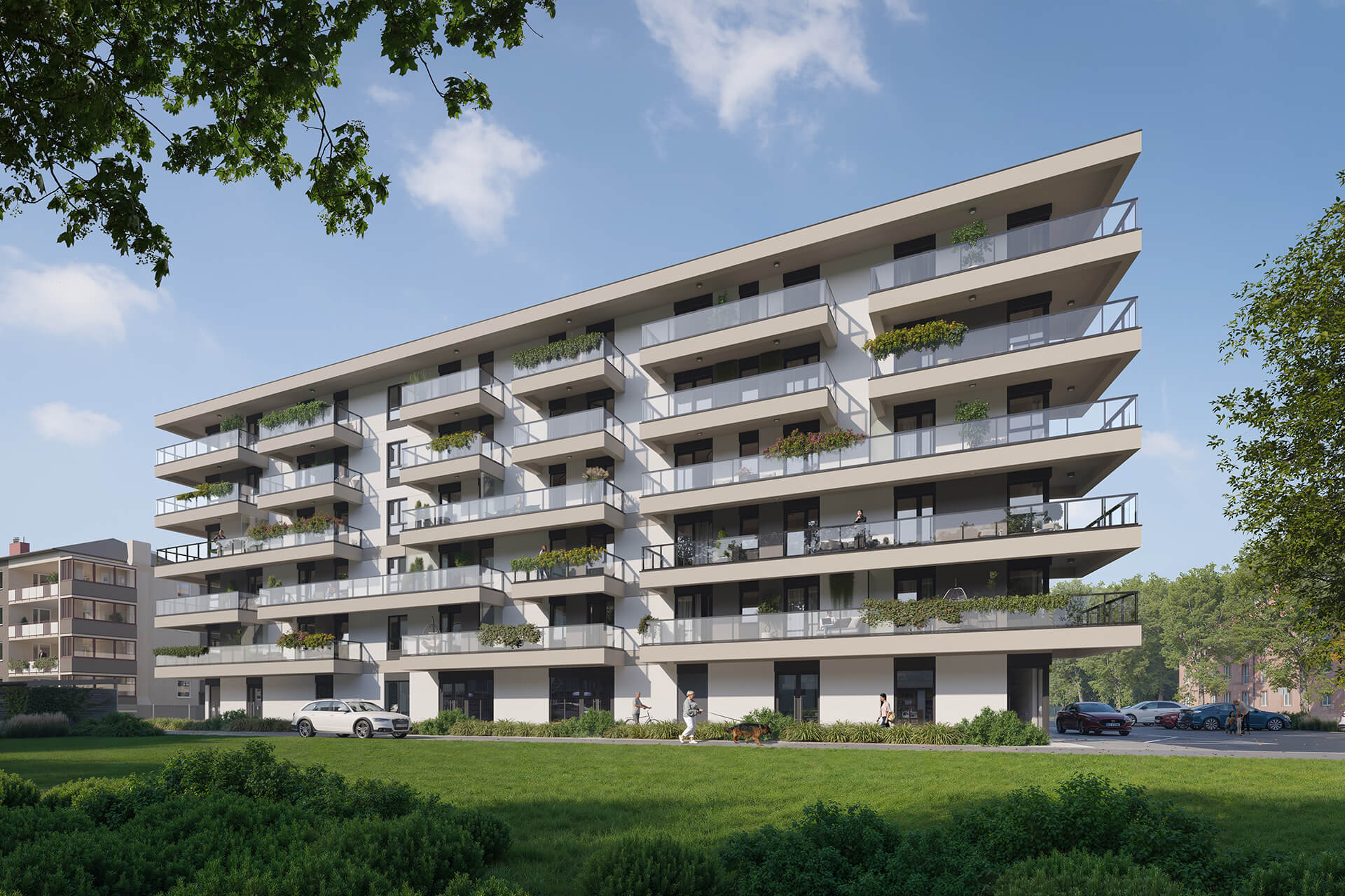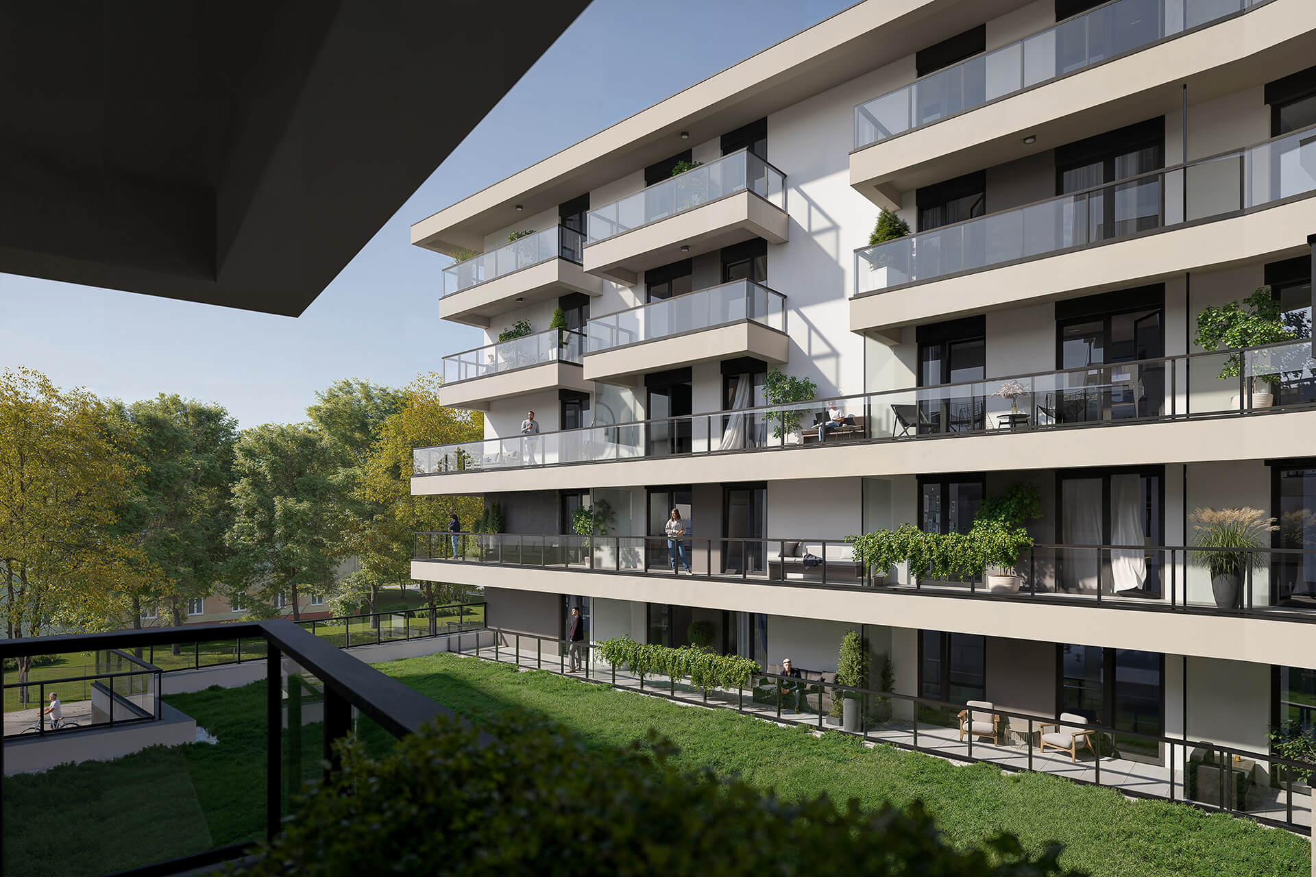 Przemyślane układy pomieszczeń, duże przeszklenia oraz doskonałe doświetlenie wnętrz sprawiają, że każde mieszkanie jest jasne, komfortowe i przyjazne do życia. Przestronne balkony stanowią naturalne przedłużenie strefy dziennej, tworząc idealne miejsce do relaksu i odpoczynku.