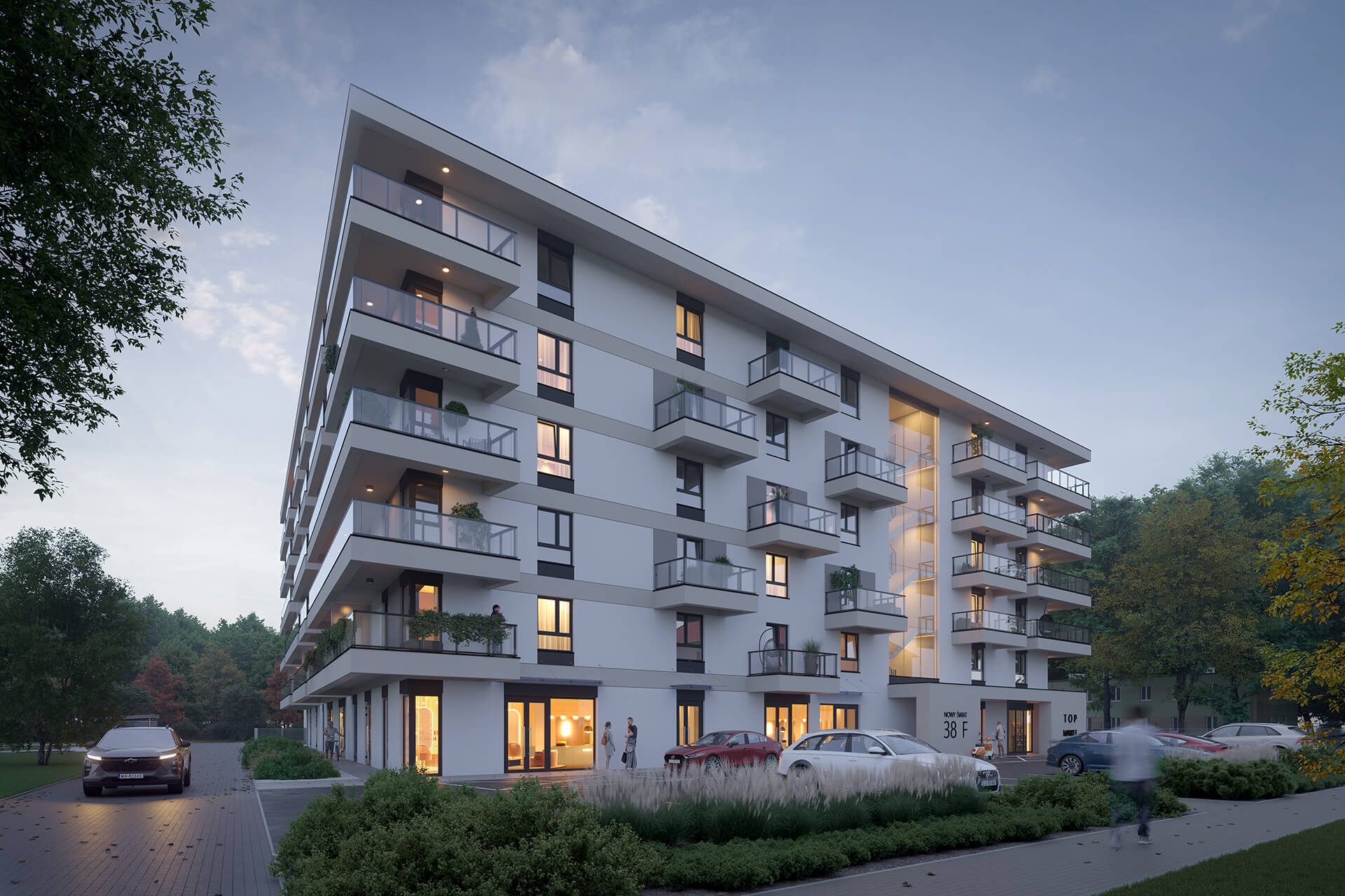 Osiedle Nowy Świat wyróżnia się na tle innych inwestycji nowoczesnym designem oraz wysokim standardem wykończenia. Starannie zaprojektowane części wspólne, eleganckie klatki schodowe oraz dbałość o detale architektoniczne tworzą spójną i estetyczną przestrzeń, do której aż chce się wracać. Każde przejście przez próg sprawia wrażenie wejścia do nowego świata.